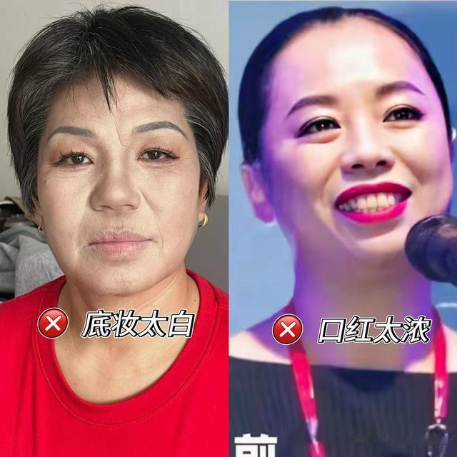太白的底妆和太浓的彩妆都是无效妆容,面部的底妆和脖子分层,会显得非常假,而且厚重的底妆会让皮肤看起来更加干燥,凸显皱纹。太浓的彩妆则会给人一种用力过猛的感觉,日常画着这样的妆容一点都不耐看。