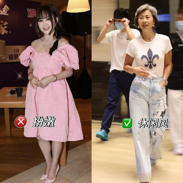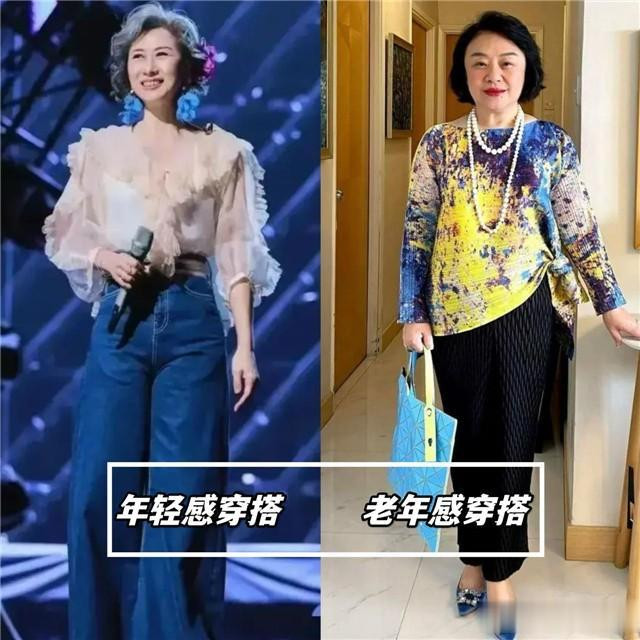 叶倩文就不被这些老年服饰束缚,我们从来没看到她穿着这类款式老气的老年服,反倒是靠着无龄感穿搭,比如设计时髦的衬衫、牛仔裤,剪裁独特个性,花色不严肃,轻轻松松打造出了属于中年女人的时尚。